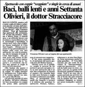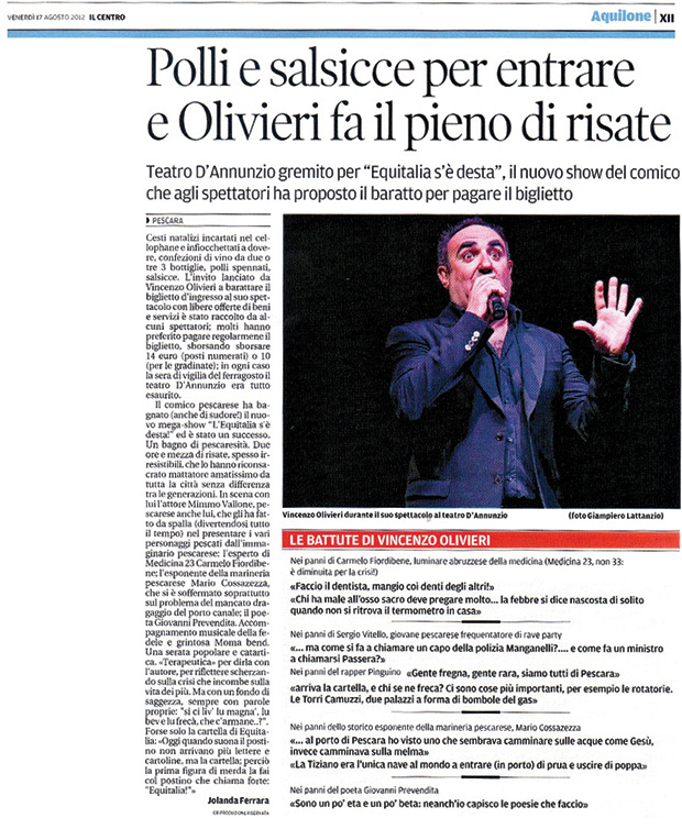 Vincenzo Olivieri: l’artista, pescarese doc, da vita ogni volta ad uno spettacolo cabaret e animazione unico nel suo genere.